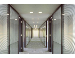 | 高隔间、成品隔墙,铝合金边框,材料有钢化玻璃、美欣板、OA绒布包面等。 |
