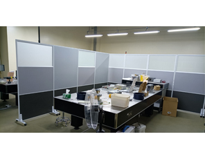 2、屏风部分为常规办公隔断,采用6063型高坚度铝合金型材边框,E0级环保密度板基材/冷轧钢板,结构稳固可靠;
